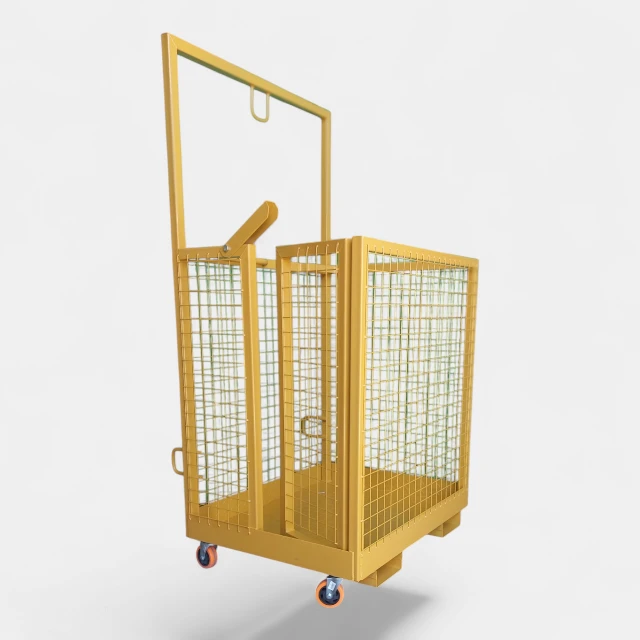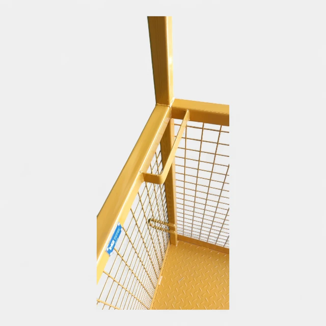 - Canastillo de seguridad para trabajos en altura; diseñado para uso con grúa horquilla, apiladores eléctricos u otros similares.