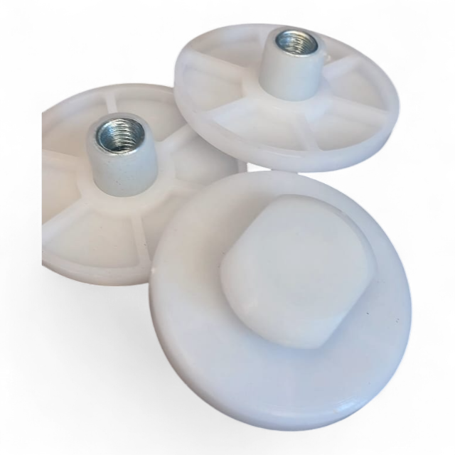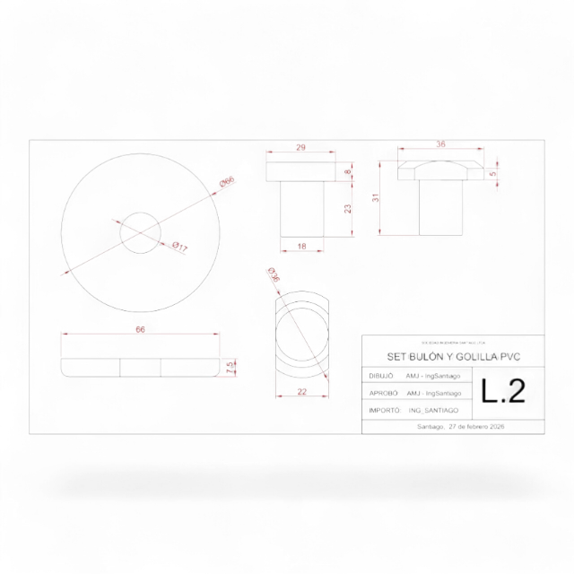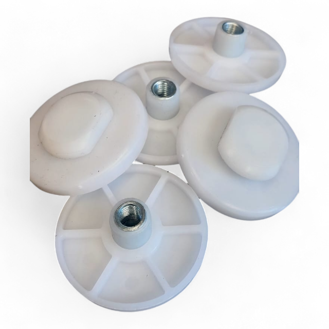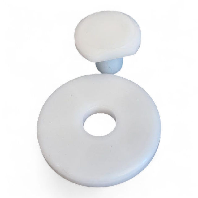 - Descripción: el kit de montaje esta compuesto de un bulón y una golilla de PVC blanco. El bulón tiene un inserto de acero con hilo M10, lo que lo hace el más resistente del mercado, permitiendo apretar y asegurar sus montajes sin temor de que se parta o rode el hilo por apriete excesivo. Este sistema de montaje se usa preferentemente en la sujeción de marcos de puertas frigorificas, y otros accesorios que requieren de una terminación sanitaria óptima.